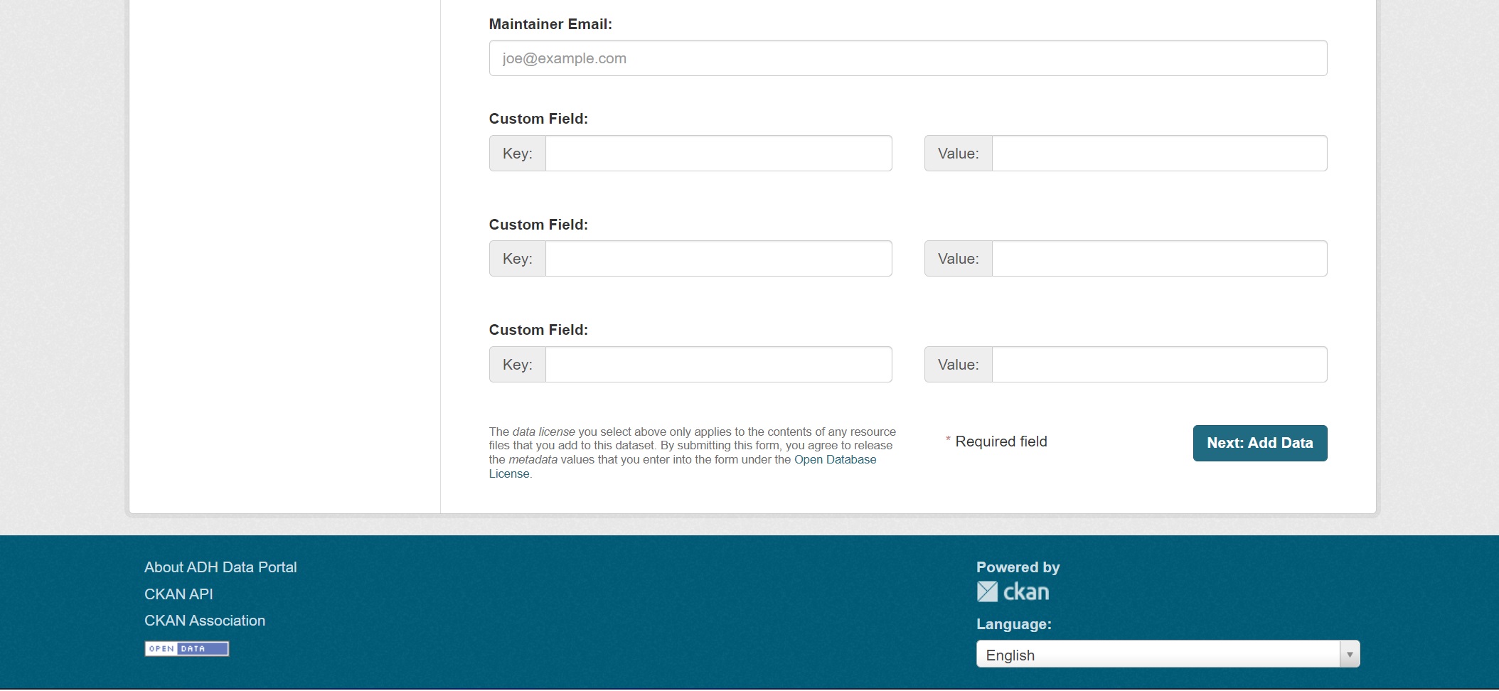 Once you have filled in all of the required metadata fields, click the Next: Add Data